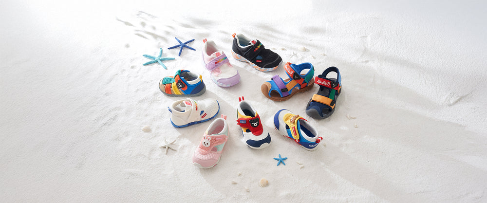 Our sandals and mesh shoes are soft, breathable, and easy to put on – ideal for little ones on the go. Thoughtfully designed in Japan to support healthy foot development.